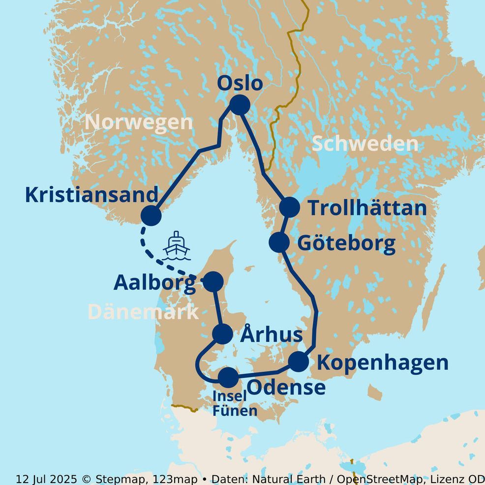 Skandinaviens Küsten – Dänemark, Schweden & Norwegen ab/bis Deutschland