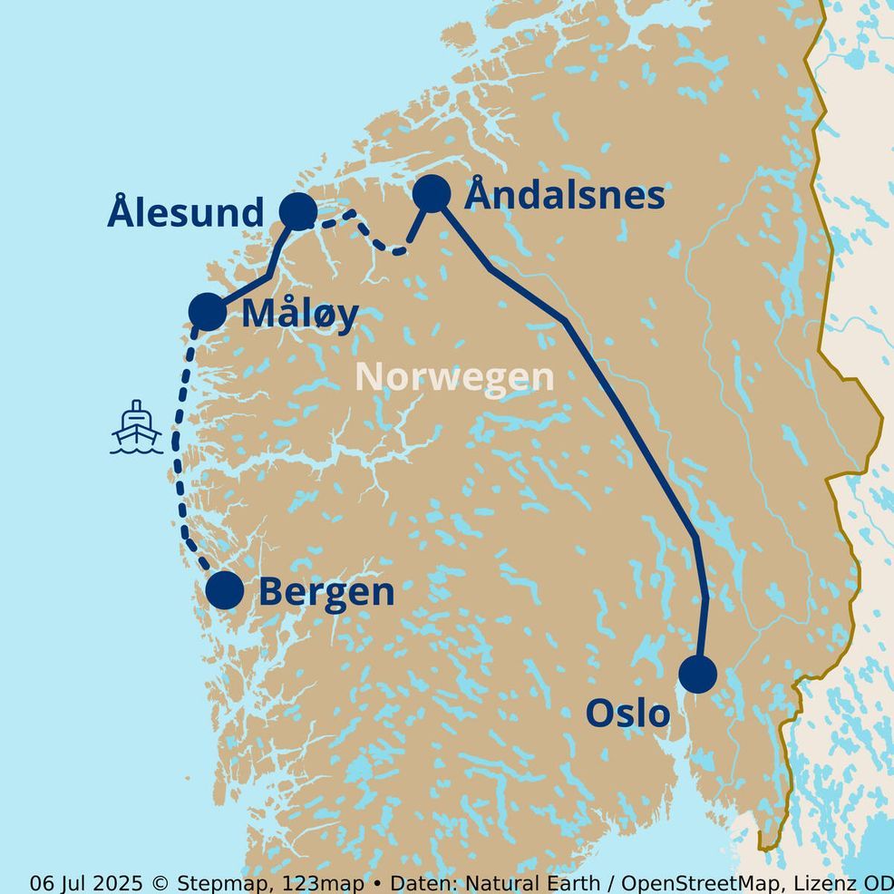 - Diese Tour ist gut kombinierbar mit der Reise "Norwegens Panoramarouten Oslo – Bergen" (ID 229792)
