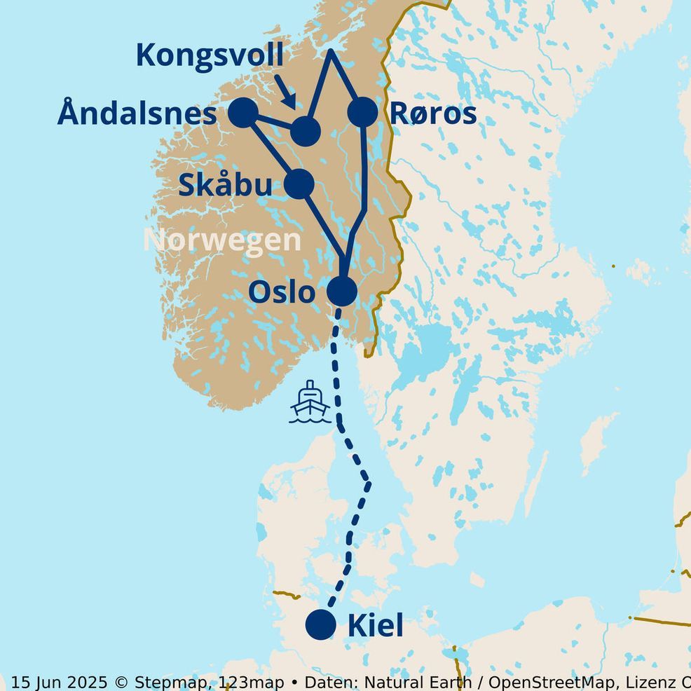 - 12-tägige individuelle Linienzug-Reise durch Norwegen ab/bis Kiel