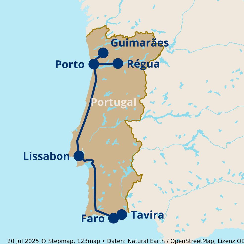 Erleben Sie Portugal auf einzigartige Weise – mit dem Zug, zu Fuß und per Boot! Diese 10-tägige Kultur- und Genussreise führt Sie von den geschichtsträchtigen Gassen Portos durch das spektakuläre Douro-Tal bis in die lebendige Hauptstadt Lissabon und weiter an die sonnenverwöhnte Algarve. Entdecken Sie UNESCO-Welterbestätten, verkosten Sie edle Weine direkt beim Erzeuger und erleben Sie echte portugiesische Lebensfreude – stilvoll, authentisch und komfortabel. Ideal für Entdecker, Genießer und Liebhaber des langsamen Reisens.