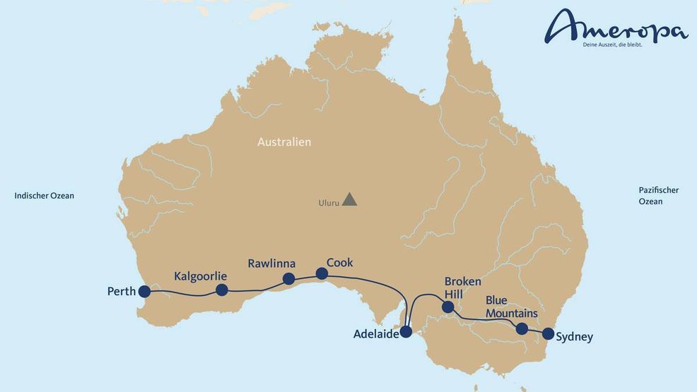 Erleben Sie Australien in seiner elegantesten Form – auf einer exklusiven Reise mit dem legendären Indian Pacific quer über den Kontinent. Sie residieren in den neuesten und hochwertigsten Kabinen des Zuges, genießen erstklassigen Service und erlesene Küche während der Fahrt von Sydney nach Perth. Vor und nach der Zugreise erwarten Sie luxuriöse Hotels, spannende Ausflüge und besondere Momente in zwei der faszinierendsten Metropolen Australiens.