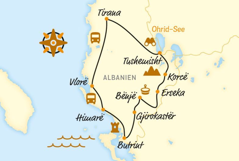 Manche sagen, dass ein Besuch in Albanien einer Reise in die Vergangenheit am nächsten kommt. Erst 1991 öffnete sich das Land – und die Welt kam zu Besuch. Unsere abwechslungsreiche Albanien-Tour führt Sie von der ruhigen Schönheit des Ohrid-Sees über malerische Berge und glitzernde Flüsse bis hin zu den einladenden Stränden der Albanischen Riviera. Die teils bergigen Strecken können mit dem E-Bike gut bewältigt werden und ermöglichen einen Einblick in eine beinahe unberührte Welt, in der viele Menschen von der Landwirtschaft leben und sich noch hauptsächlich selbst versorgen. Das gute albanische Essen kommt auf der Reise auch nicht zu kurz und bietet Gelegenheit, die Gastfreundschaft der albanischen Bevölkerung zu erleben.
