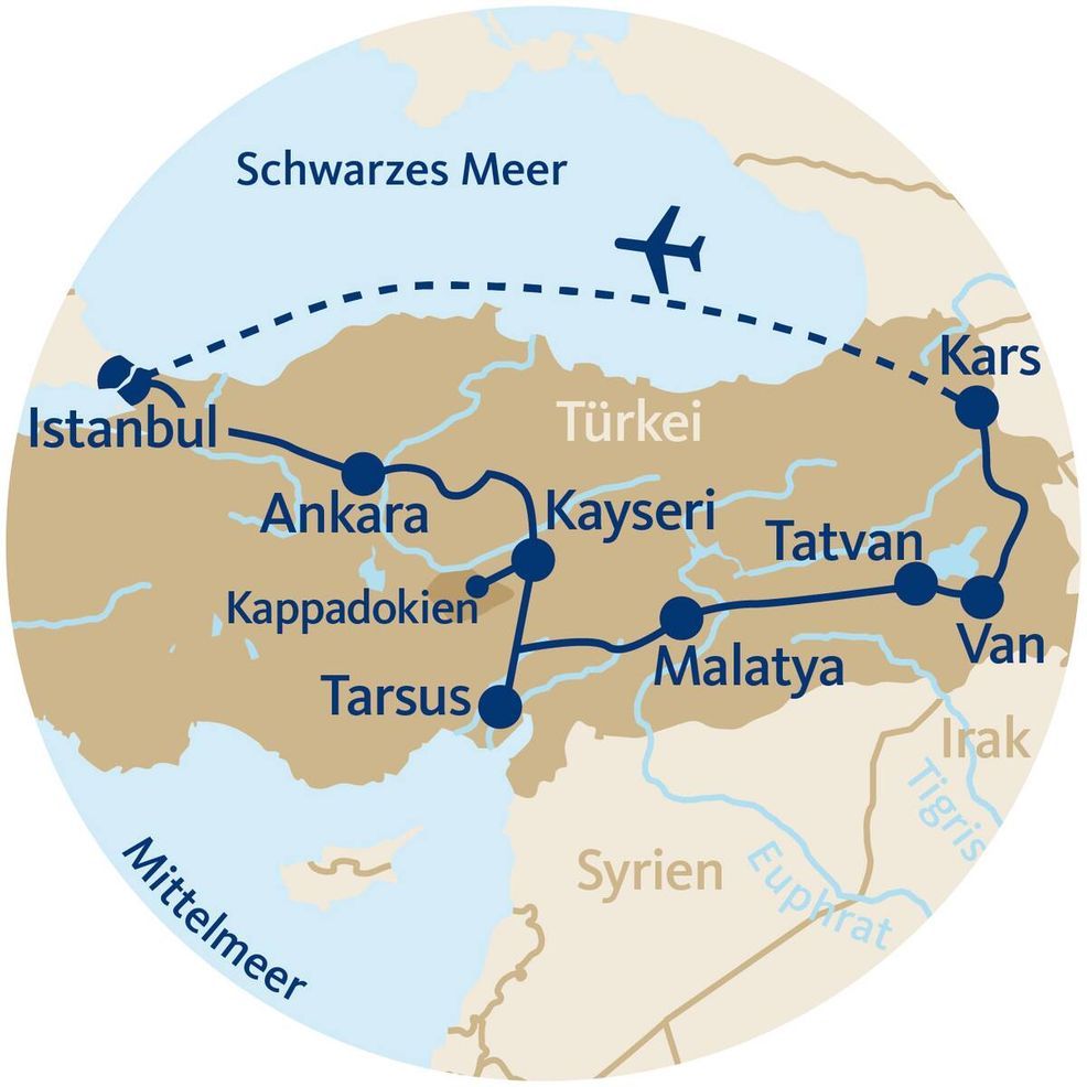 Nach erlebnisreichen Tagen heißt es heute Abschied nehmen. Transfer zum Flughafen Istanbul und Rückflug nach Deutschland. Im Gepäck unvergessliche Eindrücke, faszinierende Landschaften und die vielfältige Kultur einer Region voller Geschichte.