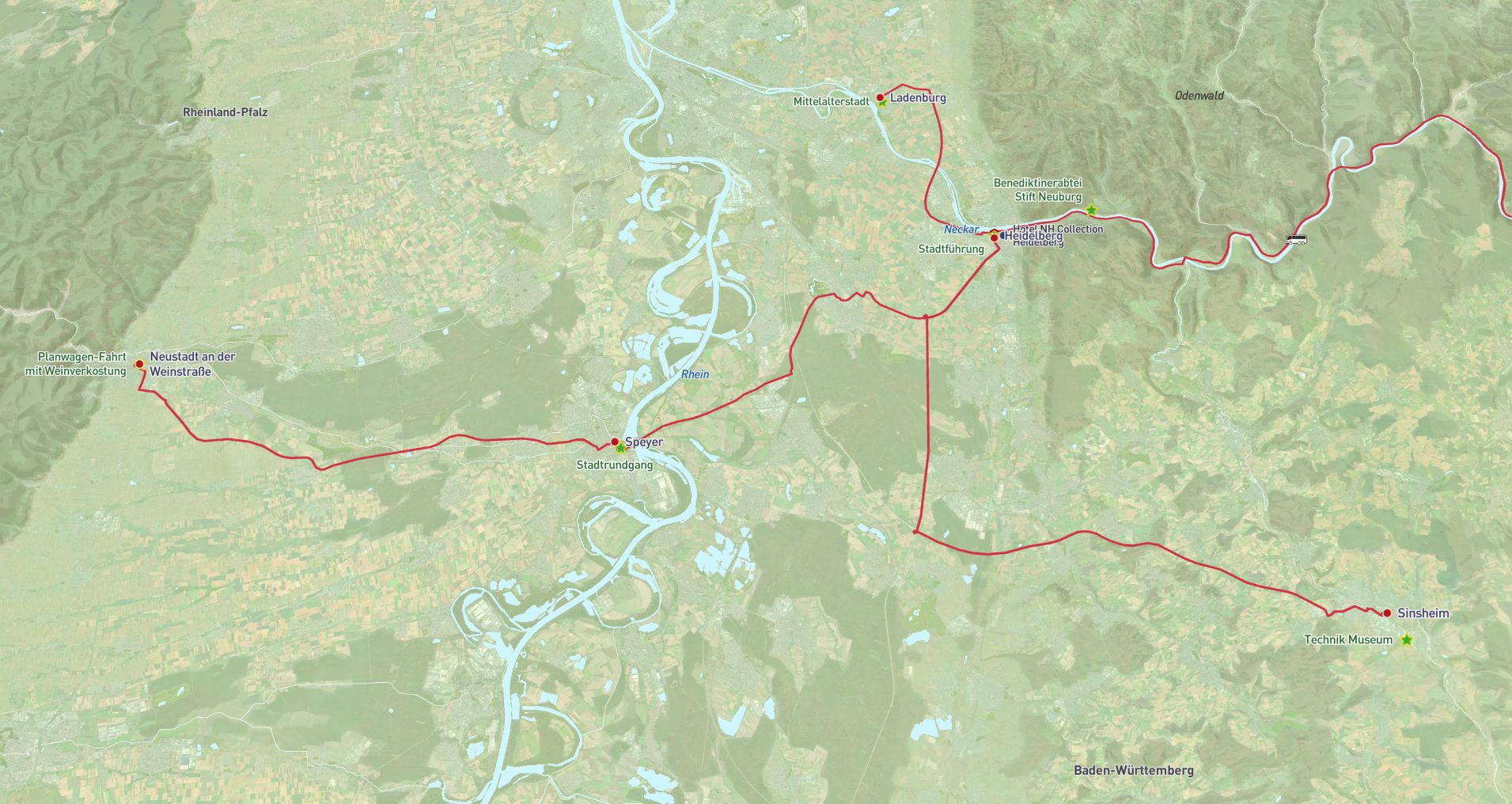Alternativ können Sie individuell mit dem PKW oder dem Zug anreisen und treffen am Nachmittag Ihre Reisegruppe sowie Ihre Reisebegleitung im 4-Sterne-Hotel, welches unweit des Heidelberger Stadtzentrums gelegen ist. Weitere Informationen dazu finden Sie unter der Anreise-Möglichkeit mit eigener Anreise.