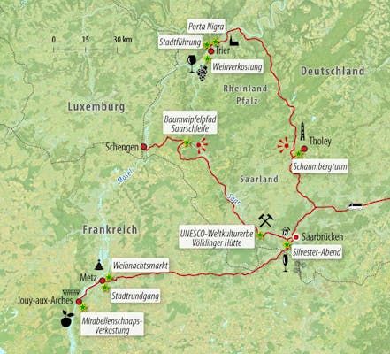 6 Tage Silvesterreise im Saarland in Deutschland: Saarbrücken – Lothringen – Metz – Jouy-aux-Arches – Trier – Saarburg – Mettlach – Saarschleife – Schengen – Völklinger Hütte