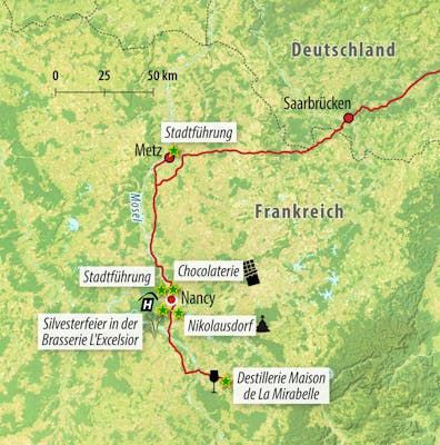 - Lernen Sie die Stadt Nancy mit Ihren Jugendstilbauten sowie Ihrer "Rue Gourmande" intensiv kennen und bummeln Sie durch die traditionellen Nikolausdörfer!