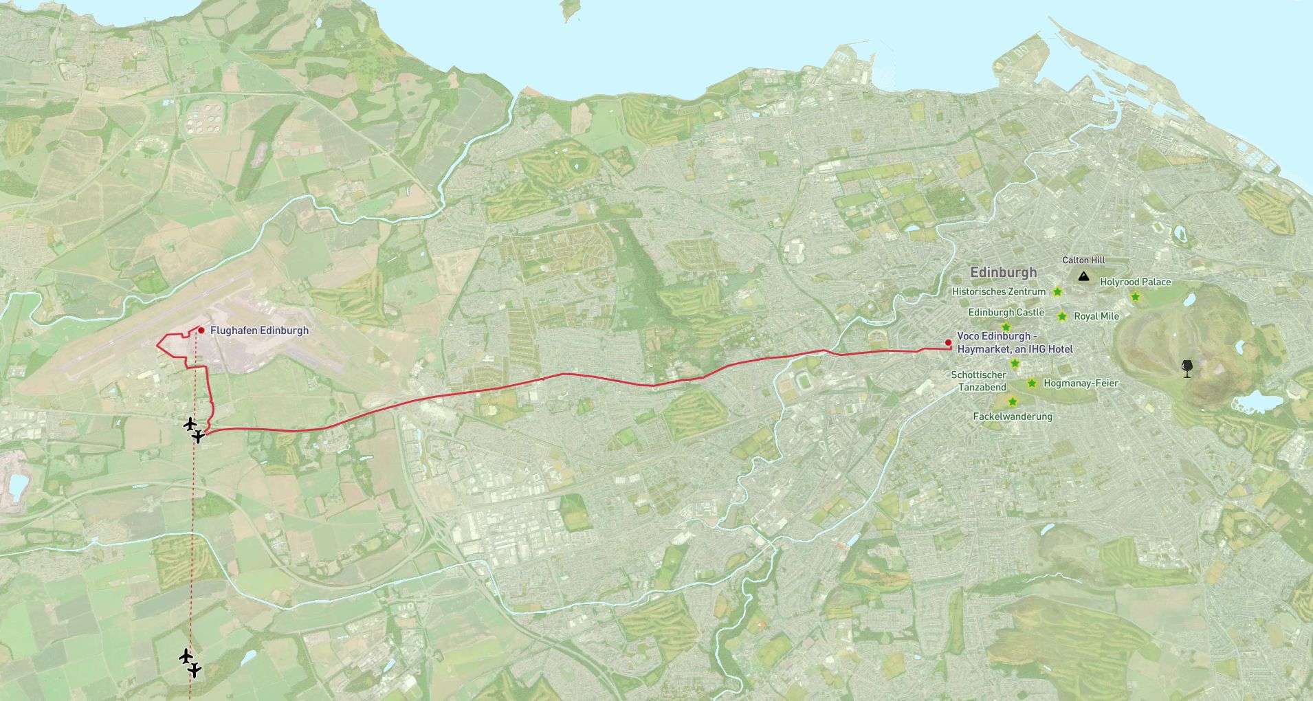 - Flüge ab/an Dresden, Leipzig, Berlin, Hamburg, Stuttgart, Frankfurt/Main oder München nach/von Edinburgh (Zwischenlandung möglich)