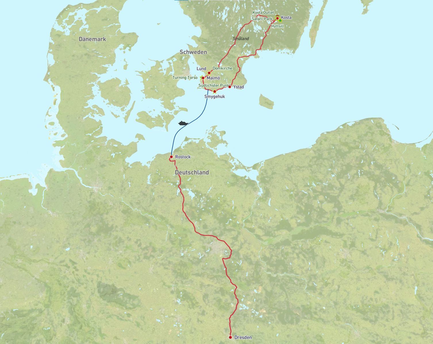 1. Tag: Anreise nach Rostock - Fährüberfahrt von Rostock nach Trelleborg (Nachtfähre mit Übernachtung)