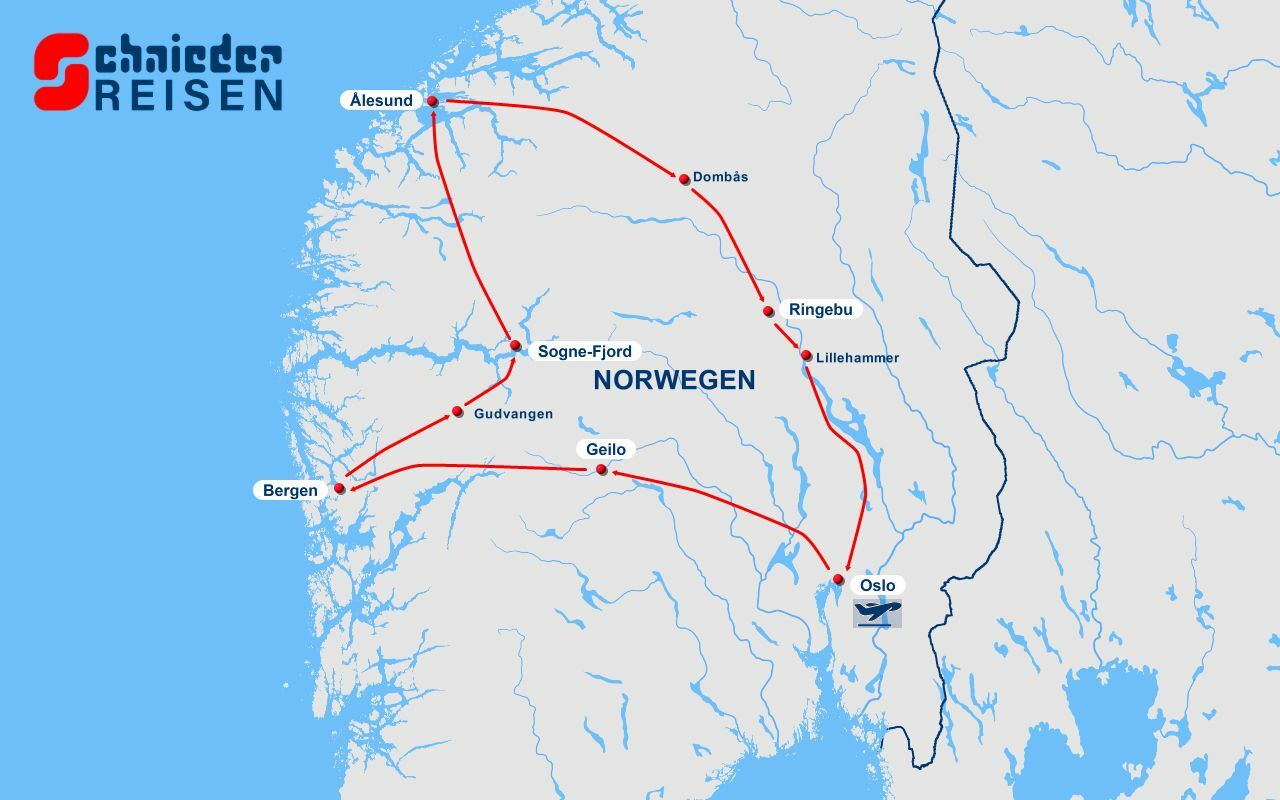 Das beeindruckende Fjord-Norwegen erwartet Sie: Mit Bergen und Ålesund entdecken Sie zwei faszinierende Hafenstädte mit einer äußerst sehenswerten Architektur. Zudem stehen der berühmte Geiranger-Fjord, der Sogne-Fjord sowie eine Fahrt über die bekannte Touristenroute „Trollstigen“ auf dem Programm dieser Norwegen-Rundreise. Das Panorama und die Einzigartigkeit dieser Naturwunder werden Sie nicht mehr loslassen. Und natürlich darf eine Besichtigung in der norwegischen Hauptstadt Oslo nicht fehlen.